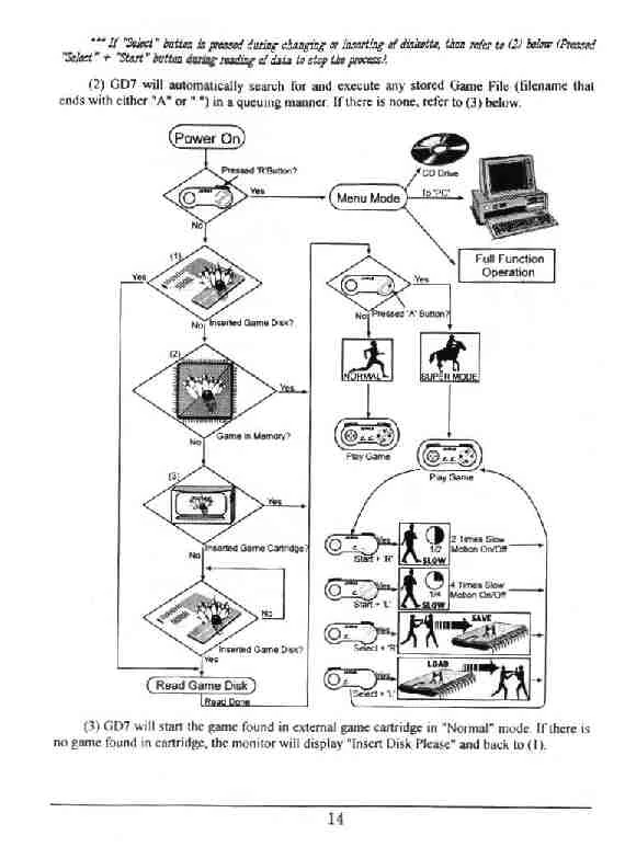 There are a few things to remember when loading a file. This section assumes that you have a ROM in PSF2 format. Plain ROMs load normally. If they are above 8MBits/per disk, the PSF2 will split the ROM in it's memory. If the ROM is split across multiple disks, it will ask for the next disk. If you have a 24MBit game split into 2 12Mbit files on two disks, they will take up 3 slots of PSF2 memory. If your game has Save RAM, be SURE to load your BRAM file into memory and SAVE your BRAM file when you're done. If that game ever leaves memory, or another game that uses BRAM is loaded, your BRAM file is gone. I always save my BRAM to disk when I'm done playing as a precaution. BRAM files are the same filename as the game, with the extension .B0X where X is 1,2,3, etc. The PSF2 gives you the option of changing the "X" to suit multiple BRAM files. Some games need to be loaded in a specific slot to work right. I imagine it has something to do with memory addressing. I've only seen this problem once, but for your information, here it is: