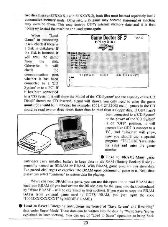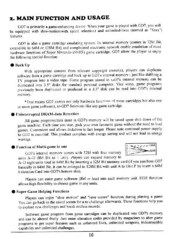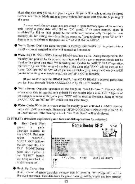- Comment 1: Carl Industries (US importers) and Bung Enterprises presents the Professor SF2 (top left is US version) SNES backup unit. This is the US version of Hong Kong's number one selling unit, the Game Doctor SF 7. People love it because it's very reliable and has tons of great features. These units "piggyback" onto your SNES system, and allow you to back up your SNES cartridge games to floppy disks. You then need only the disks to play your games, through the unit's built in 3.5" disk drive. Its unique feature is that it is able to have multiple games loaded simultaneously into its memory, which stay there even with SNES power off! No need to load floppies over and over again! It also has an onscreen menu system which is controlled through the SNES controllers. The menu system features self testing (Memory, BRAM, ROM, and disk drive), file management, etc. It has many features including slow motion, real time save, Gold Finger cheat code system and superior error handling. It can transfer games from disks, computer, CDROM (optional), or memory. Other features include: 32 Mbit or 64 Mbit RAM, self test, menus in English, Chinese, or Japanese, 3 cheat modes, 256k BRAM, BRAM saves, BRAM copying to and from a cartridge, DSP support, and a PCX image slideshow function. Components are manufactured in ISO-9000 factories, to provide excellent quality. It boasts clean, integrated PCB design and multi-voltage power supply capability. To change from SF7 to Professor (and back again) toggle jumper 3 (S3) on the mainboard.