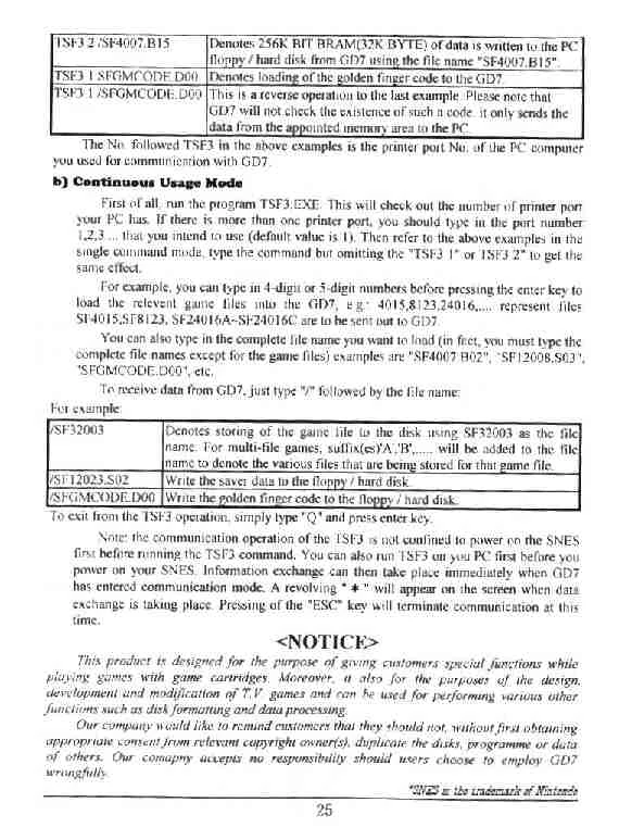Parallel connection: The PSF2 comes with a utility that is also available on the net called TSF3. It allows you to copy games via your parallel port into (or from) your copier.
